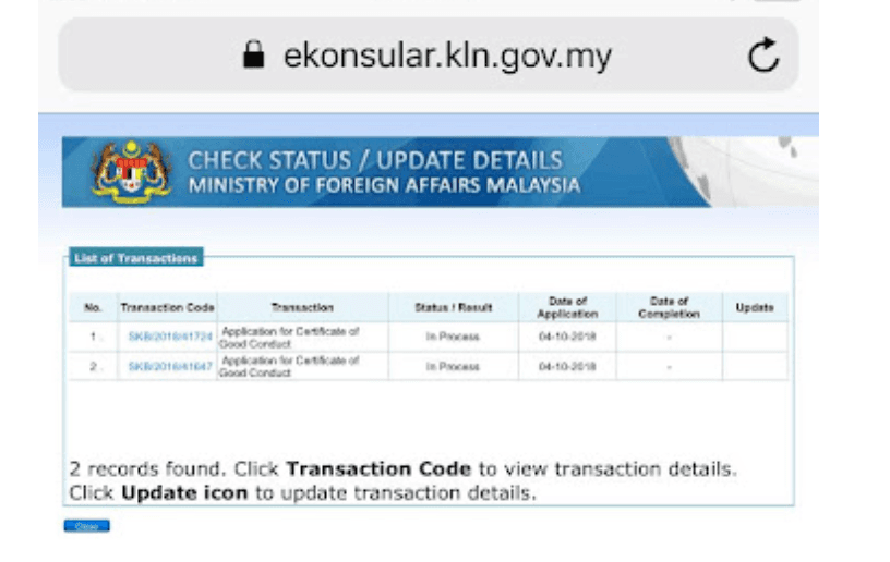 STEP 4 : Go back to check your request status it will show up as " Inprocess " It can take 45 Days for them to check your profile history. If the status change to " Ready to collect " you can bring your confirmation page , Copy of your passport , and print out the status "Ready to collect" to pick up your certificate and Malaysia Embassy at the country that you resided in.